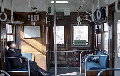 クモハ61004の車内 1982/3/27 座席のダサいバックは管理人のです。 |