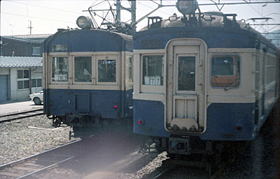 | クハユニ56002(左)クハ68403(右) 伊那松島 1982/3/27 |