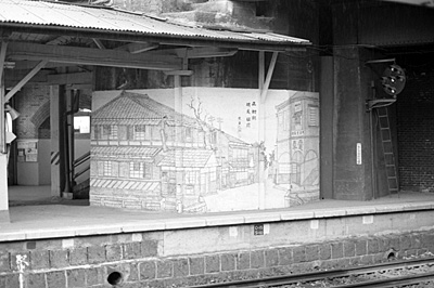 折尾駅地上ホームの壁画? 1986/12/26 思わずシャッターを切りました。 |