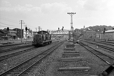 DD51 1070 直方 1990/3/15 広い構内にDD51が待機中です。昔は随分賑ったのでしょうか。 |