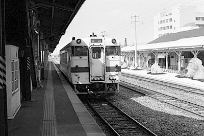 キハ23orキハ45?他 折尾 1986/12/26 今となっては電化され景色も変わってしまったのでしょうか。 |