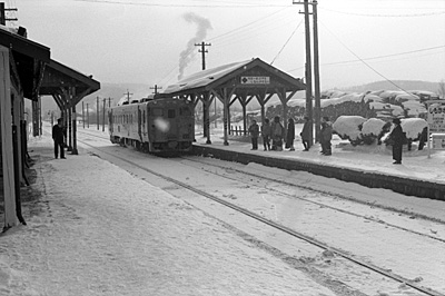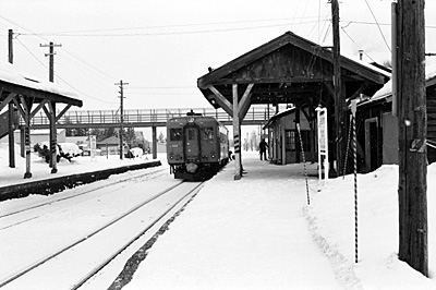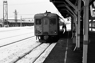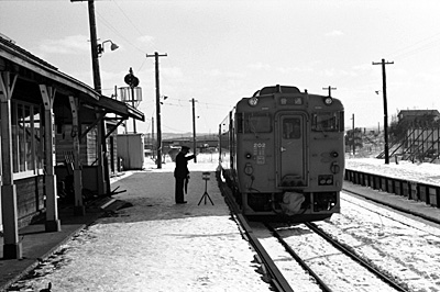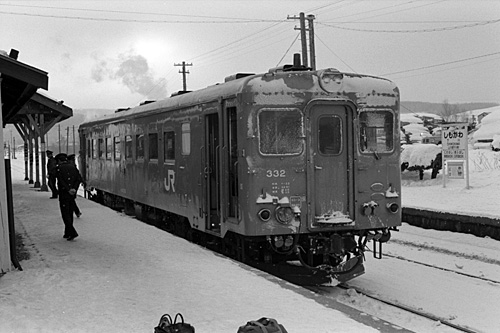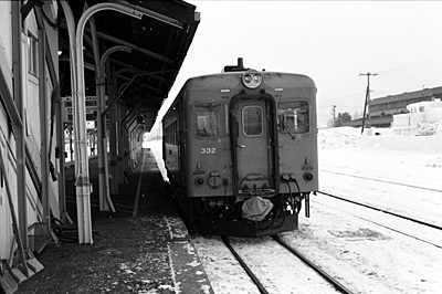 643D下川行 キハ22 332 下川 1989/2/13 終点の下川に着きました。 |