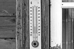 下川駅前の民家軒先の温度計 1989/2/13 朝の8時頃だったと思いますがマイナス8℃くらい |