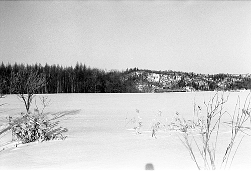 Ⅱ 鬼志別にて 鬼志別では304D急行天北との列車交換です。列車の窓から撮影しようとすると先頭はキハ56系でした。天北は客レから新型キハに置き換えられていましたが、車両が足りないときはそうした車両が使用されていたようです。5両編成の立派な姿を見送った後、乗って来た725Dを見送り(13:20)再び撮影場所を探して雪の中をさまよいます。この日の天気は良かったのですが、下りの天北を撮ったころには大分暗くなってきました。この場所でもあまり天北線らしい場所を見つけられないまま最初で最後の天北線を後にしました。 |