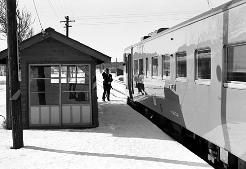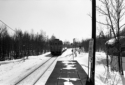 725D稚内行 新弥生 1989/2/11 簡素な乗降場にキハ40 241+155が到着です。 |