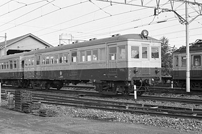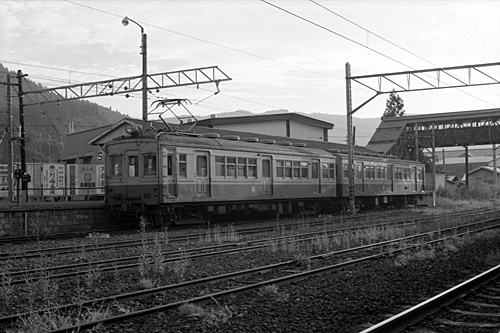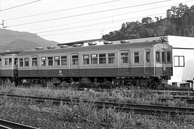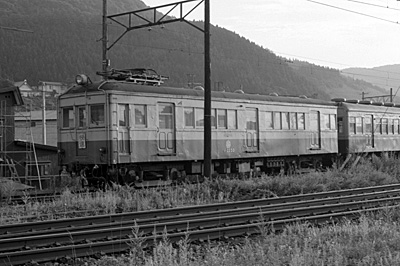 クハニ1271 津軽大沢 1987/8/30 '29年製旧伊那電気鉄道サハニフ404→'53年サハニ7902改称→'58年譲受 '?年廃車 JR飯田線から仙石線を経由してやって来ました。元々制御回路の引き通しが無く電動車に牽引される「後付付随車」でした。 |