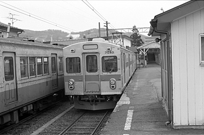 デハ7040 大鰐 1989/2/20 '65年製 旧東急デハ7040 '88年譲受 現役 大鰐線には8両の7000系がやって来ました。 |