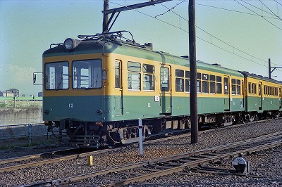 モハ12 東関屋 1984/8/19 '33年製の開業時モハ12(14 *1)の改造名義 '68年更新 '99廃車 |