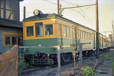 クハ49 東関屋 1984/8/19 '年製 旧神中鉄道キハ30のクハ33の車籍継承 '29製旧小田急クハ560→クハ1465の車体で製造 '67-70年入線 '93廃車 |