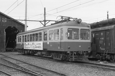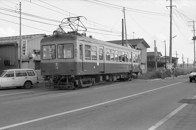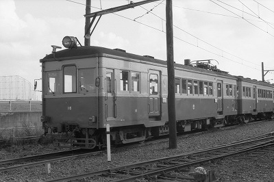 モハ16 東関屋 1988/9/1 '27年製 元伊那電気鉄道モハ1924を'56年譲受 '29製旧小田急モハ209→デハ1409の車体に'68年振替 '93廃車 |
