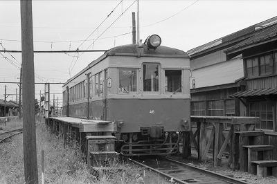 クハ46 東関屋 1987/8/28 '44年製 クハ34の車籍継承 '29製旧小田急モハ208→デハ1408の車体で製造 '67-70年入線 '81ワンマン化 '99廃車 廃車後埼玉県の個人に引き取られた模様 |