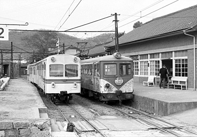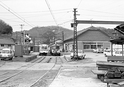 当時私が訪れることが出来た数少ない軽便鉄道です。茶屋町~児島間が1972年に廃止されJRと接続しない鉄道となっており、訪れにくい場所でした。瀬戸大橋が建設中の最中、ようやく訪れることが出来ました。四国からの帰り道にバスでJR宇野から児島に向かいました。終点となった児島駅はなんとも急ごしらえ的でちっぽけな駅でした。電車の塗色も「赤いクレパス号」と名付けられた落書き可能な電車で競合となる瀬戸大橋線になんとか観光鉄道として生き残ろうという意欲が見られました。軽便鉄道の雰囲気という趣味的には「ちょっと・・・」でしたが。途中瀬戸内海をバックに撮影したりなんとなく雰囲気のある下津井の駅で車庫を訪れたりした後、やはりバスに長いこと揺られて岡山方面に出たと記憶しています。