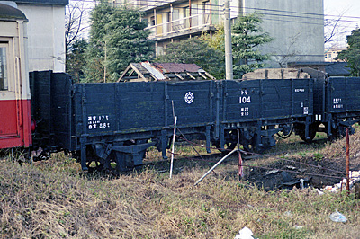 トラ104 真鍋 1987/2/6 左と同じですが背板が一部なくなって大分傷んできてます 104と105の2両が残っていました |