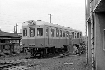 キハ511 真鍋 1983/10/30 '63年製 元江若鉄道C29M形キハ30→キハ5120 '70年譲渡され常総線転入 '71年筑波線転入 '72年キハ511に改番 当初竜ヶ崎線転用が計画されたが'81年正式に筑波鉄道へ譲渡 その後外板張替Hゴム化エンジン換装 '87年廃車 |