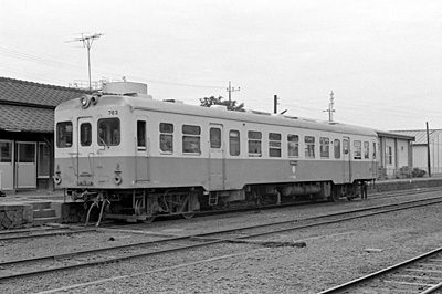 キハ763(岩瀬側) 真鍋 1986/7/6 '57年製 元雄別鉄道キハ49200Y1-3を'70年の雄別鉄道廃止により譲受 ’87年廃車 |