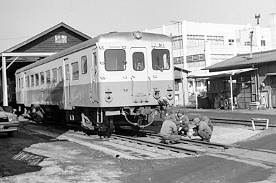 キハ811(土浦側) 真鍋 1987/2/6 路線廃止を前に機関区のおじさんたちは何を話していたんでしょう |