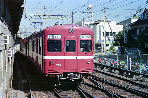 大師線 京浜川崎 1985/10/27 '67年製 '05年廃車後琴電譲渡1212となる。 大師線はありふれた700形のみで全く撮影意欲無しでした。 たまたまトップナンバーだったので撮ったこれが唯一の1枚となりました。 |
