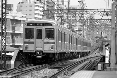 7761他 代田橋 1988/4/6 '86年製 '14年7752に改番 つまらない銀ピカ電車ですが正面窓も大きくて愛嬌ある顔です |