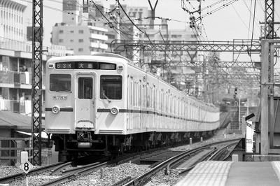 5759(5000系)他 代田橋 1988/4/6 '66年製 '92年/12廃車 5000系と5070(5100)系13編成以降はカルダン駆動 強度上から最後まで冷房化されなかった |