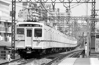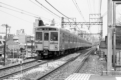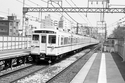 緑色で最後まで残った2010系などは当時情報不足で面会かなわずだった京王電鉄は全くもってわざわざ訪問する意欲が起きない路線でした。それでも5000系吊りかけ車が消えるという噂を聞いた春の穏やかな日にようやくカメラを持って訪れました。趣味的には5000系はつまらない電車でしたが、改めて見ると大きな窓ガラスにスマートに裾を絞った車体に上品な塗色とデザイン的にはとても優れていたと思います。最近のセンス無し電車共に見習って欲しいものです。 |