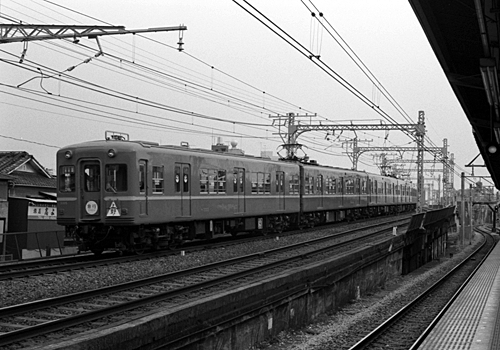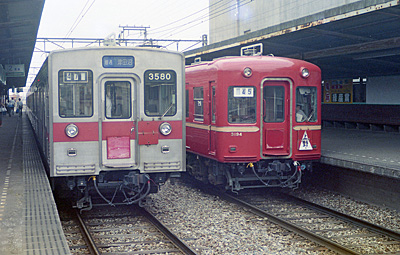 右上に1灯ライトの電車が見えますが3000形でしょうか