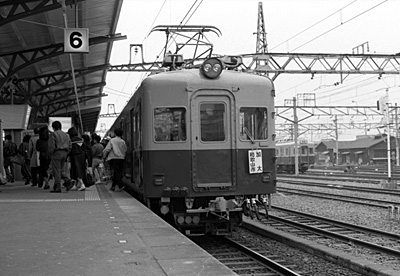 '87年春に湘南顔の1000系が無くなる直前の南海本線を訪れました。昔は四国特急で活躍した1000系も最後は朝のラッシュ時のみの運用でしたが、事前に運行を入手できたので無事に会うことが出来ました。 昇圧時に改造から外れた仲間の一部は京福にもいましたが、やはり本線を堂々と快走する姿は全く違う電車(実際機器など大改造がされていましたが)のようでした。 翌日は高野線で形態の似ているズームカー21000系に会ったり(こちらも地方私鉄に譲渡された仲間もいますが)できました。 関西の私鉄は気になる電車も多かったのですが情報も機会も少なく、あまり時間をかけて訪問することができなかったのが残念です。 その3年後に前回じっくり訪問できなかった貴志川線を訪れました。車種的に同一形式で統一されていて、地方私鉄でも同じ電車が見れることもあって事前の関心は薄かったのですが、実車を目のあたりにすると、古いながらもきちんと整備された2扉の古豪はなかなかでした。 しかしお客さんには不評だったようで、早々に新性能化、冷房化されたものの、ついに南海から見放された貴志川線は'06年和歌山電鐵として再出発することになります。猫駅長やユニークなラッピングは趣味的には「?」ですが、同鉄道の発展を陰ながら祈りたいと思います。 |