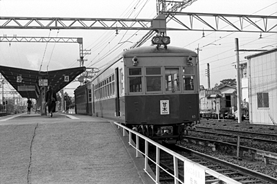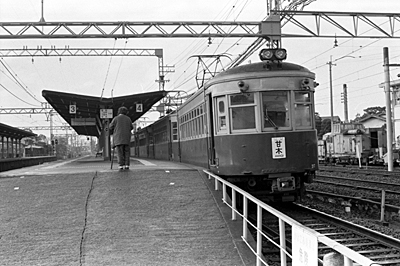 モ217 宮の陣 1986/3/15? '41年製 ク258 '52-55年に電動車化 '89年廃車 久留米方面から筑後川を渡ってこのポイントを渡って甘木線に入る |