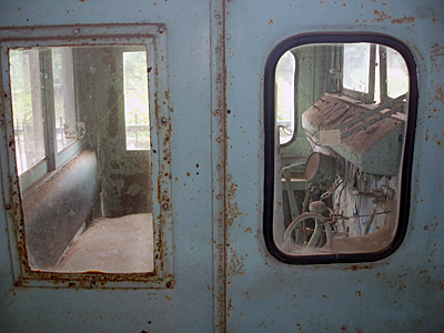 №92キャブ内 運転台席は広いです。ホコリが積み重なってひどい状況です。 |